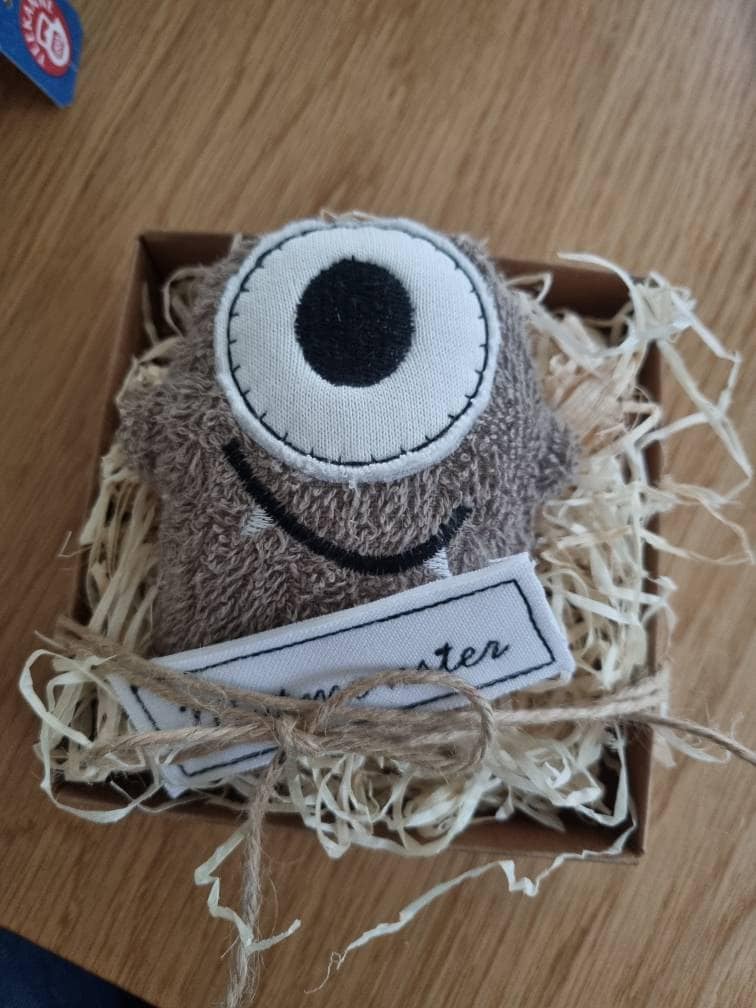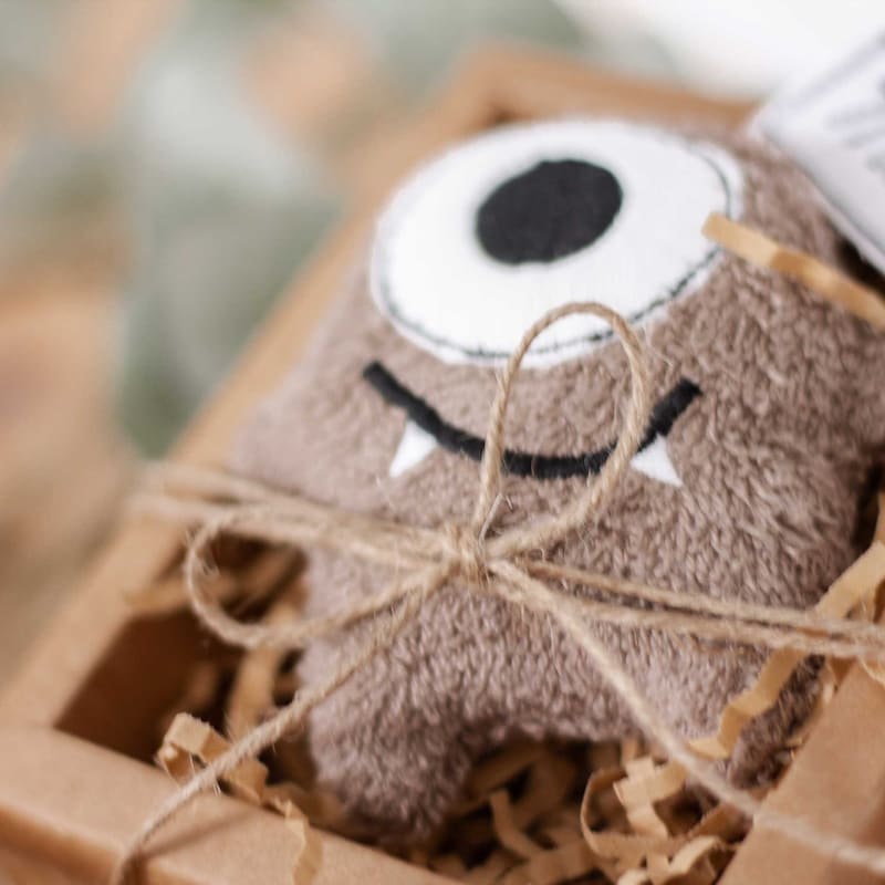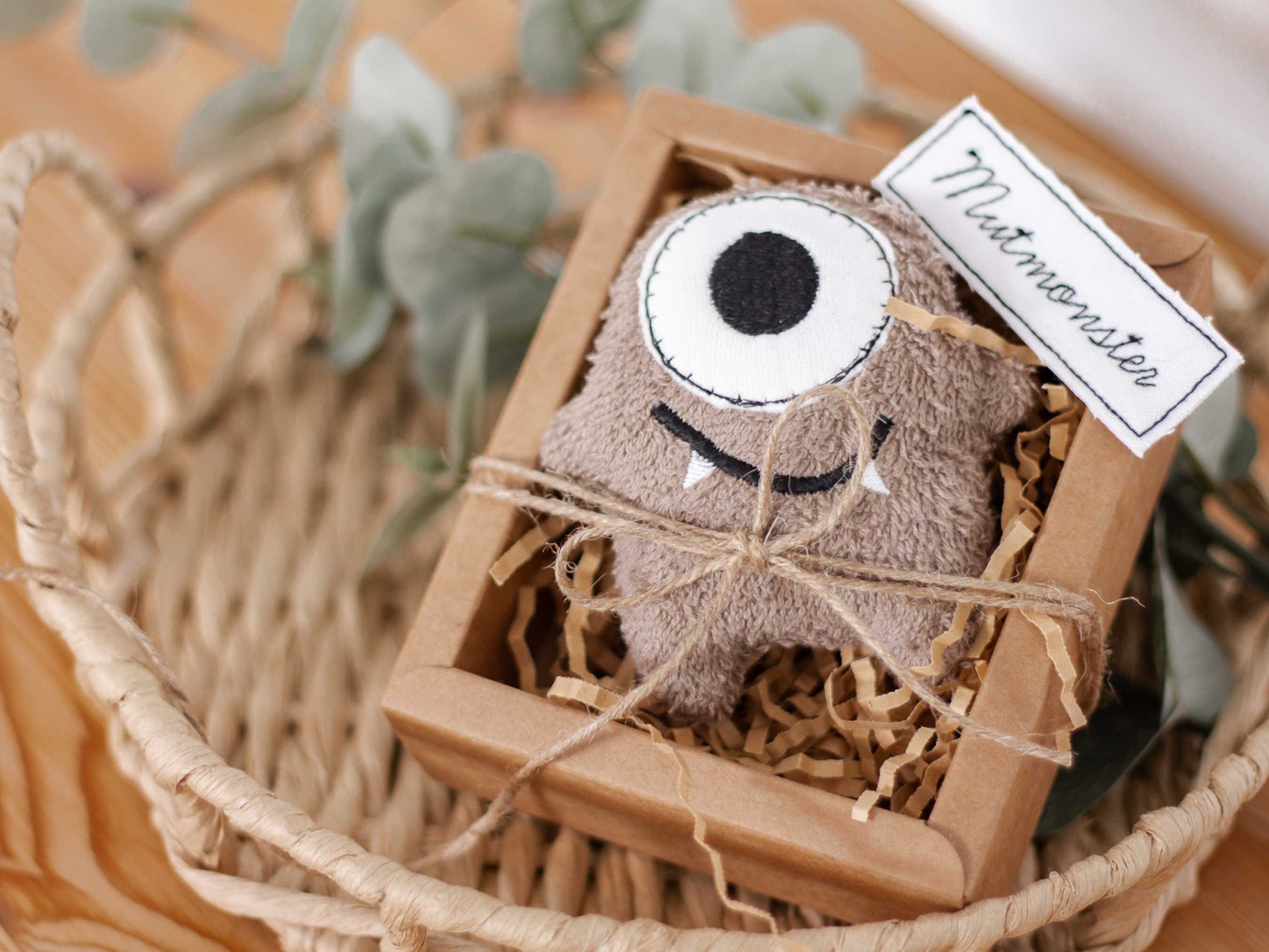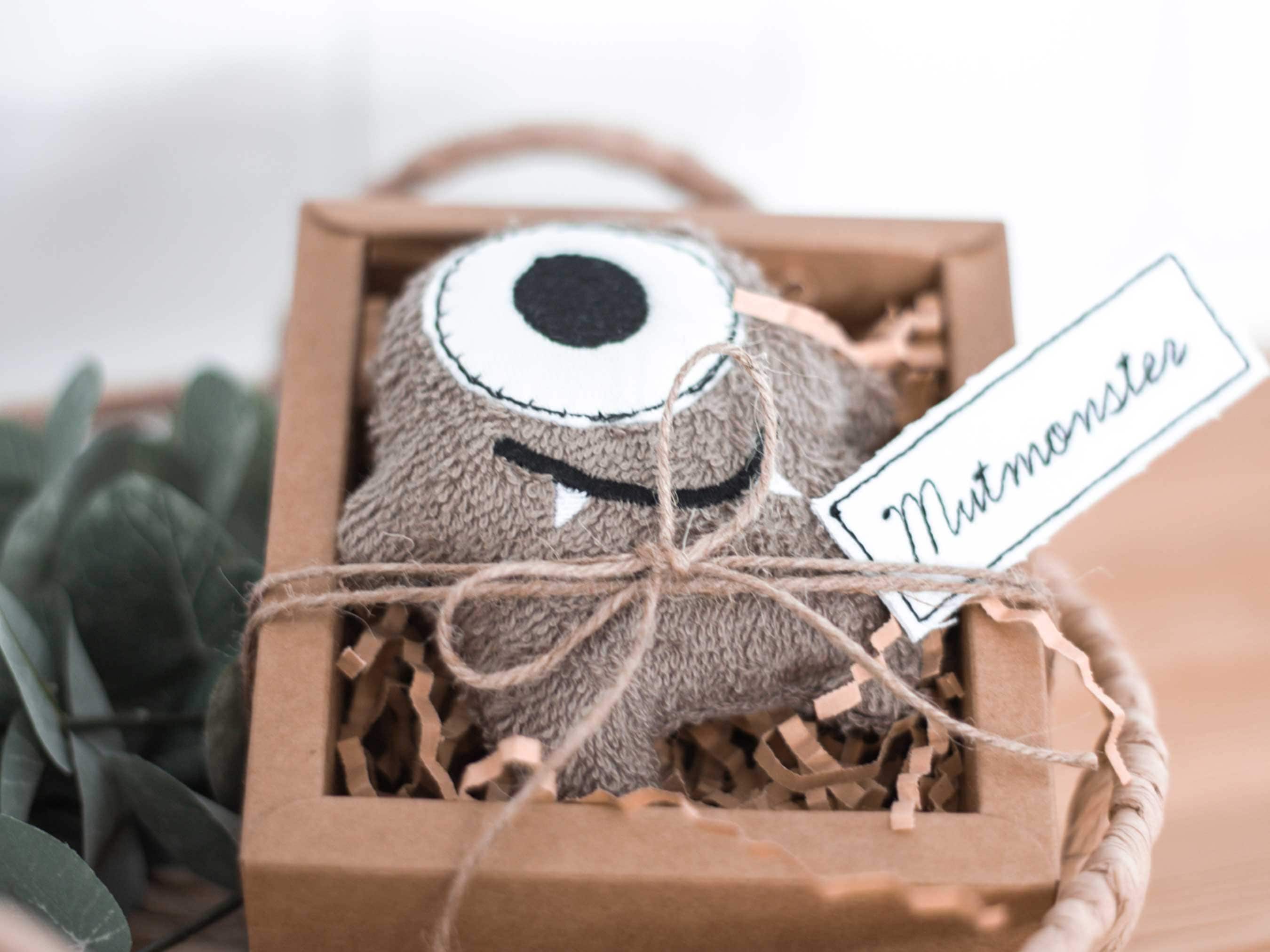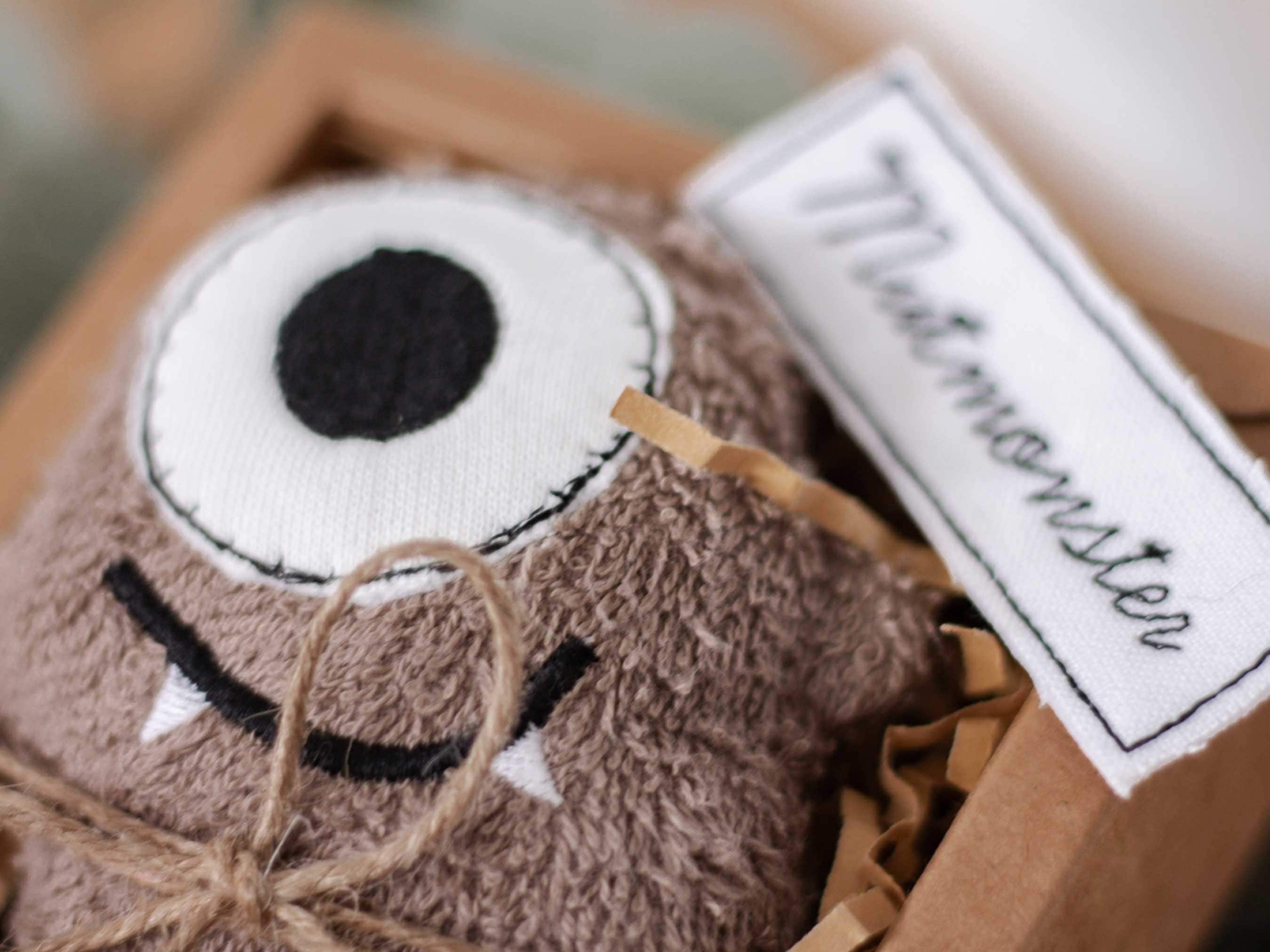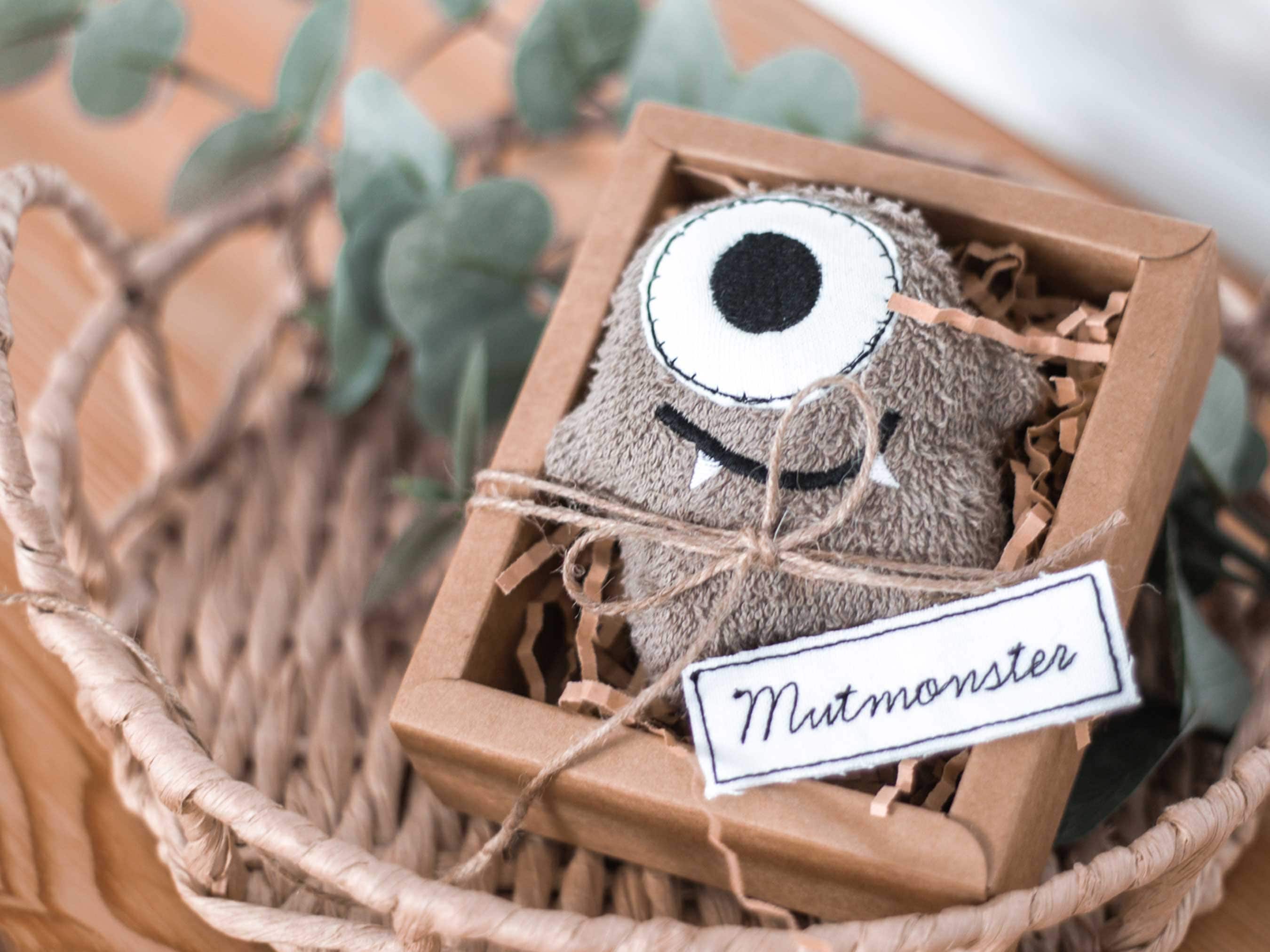 This little monster comes packaged in a beautiful gift box. It's made of 100% organic cotton and can even be washed in the washing machine (but only at 30 degrees Celsius, otherwise the courage will shrink!)